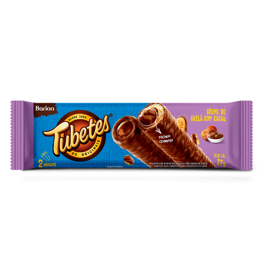 Tubetes® - Rolinho Wafer Recheado com Avelã Coberto com Chocolate 27g