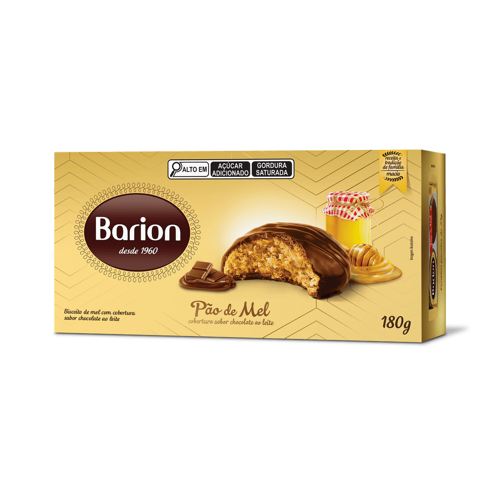 | Ingredientes | Farinha de trigo enriquecida com ferro e ácido fólico, cobertura sabor chocolate ao leite (açúcar, gordura vegetal, cacau em pó, leite em pó integral, emulsificantes lecitina de soja e ésteres de ácido ricinoléico interesterificado com poliglicerol, estabilizador triestearato de sorbitano e aromatizante vanilina), açúcar invertido, gordura vegetal, mel, especiarias, fermentos químicos bicarbonato de amônio e bicarbonato de sódio, umectante sorbitol, emulsificante lecitina de soja, aroma artificial de rum, aroma idêntico ao natural de baunilha, conservador propionato de cálcio e acidulante ácido lático. |